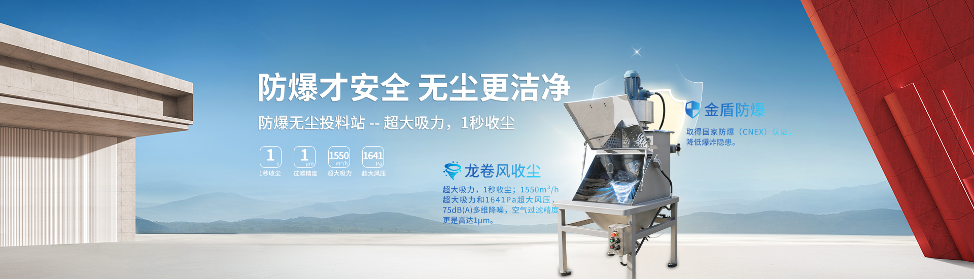 易清洁,卫生级标准设计。 | 投料平台为负压状态,无粉尘外泄无尘环保,投料过程的物料无丢失,保护洁净环境。 | 投料过程的操作安全,降低劳动强度,保护人员安全生产。 | ||