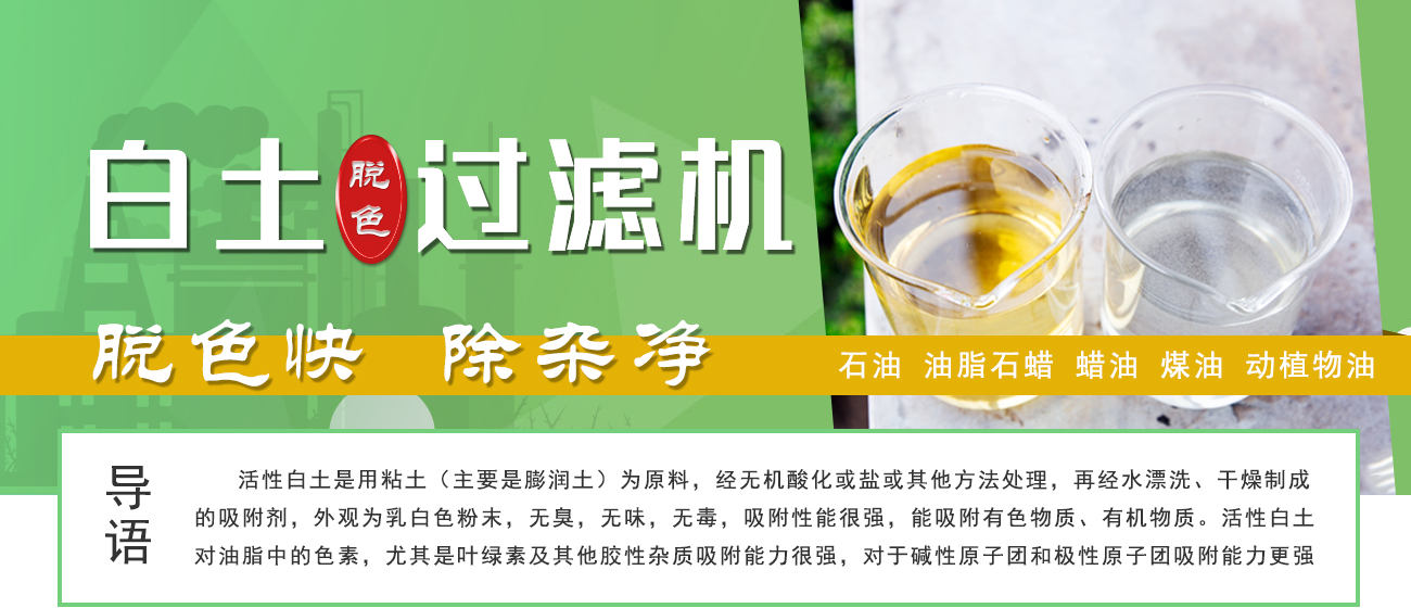 活性白土是用粘土(主要是膨润土)为原料,经无机酸化处理,再经水漂洗、干燥制成的吸附剂,外观为乳白色粉末,无臭,无味,无毒,吸附性能很强,能吸附有色物质、有机物质。在空气中易吸潮,放置过久会降低吸附性能。但是,加热至300摄氏度以上便开始失去结晶水,使结构发生变化,影响褪色效果。活性白土不溶于水、有机溶剂和各种油类中,几乎完全溶于热烧碱和盐酸中,相对密度2.3~2.5,在水及油中膨润小。