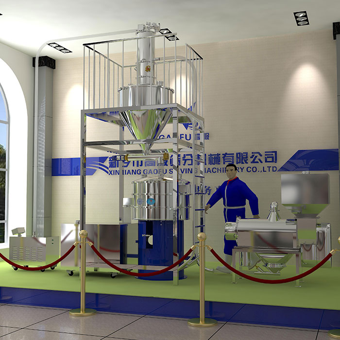 智能无尘筛分系统集上料、给料、筛分、除尘于一体的智能环保筛分系统,整个系统的控制由键盘实现,实现了筛分智能化。